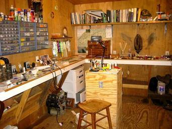 Keywords: ProfessionalFlyTyers Bench.jpg A Professional Fly Tyer's Bench and Materials Own 2008-02 Mike Cline Fly tying