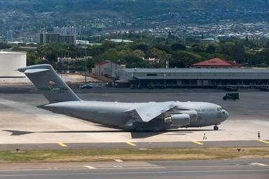 | Keywords: honolulu hawaii united states unitedstates outdoor aircraft vehicle airplane airliner jet Labels read: AMC McCHORD 88199 / U.S. AIR FORCE / 8199 / 62nd AW / 446th AW. According to www.airliners.net/search/photo.search?regsearch=08-8199 this is a Boeing C-17A Globemaster III. Labels read: AMC McCHORD 88199 / U.S. AIR FORCE / 8199 / 62nd AW / 446th AW. According to www.airliners.net/search/photo.search?regsearch=08-8199 this is a Boeing C-17A Globemaster III. | ||||
