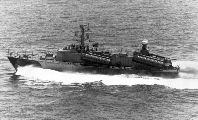 Keywords: Project 205-ER Cuban missile boat in 1984.jpg en A port beam view of a Soviet built project 205-ER NATO code Osa II class Cuban small guided missile motorboat PTG underway ru Кубинский РКА п оекта 205ЭР экспо тный ва иант п оекта 205П 7 августа 1984 года http //www defenseimagery mil/assetDetails action guid 3b980ee70da7440244c7263b6c63cbd3274f4865 en DefenseImagery mil for DN-SN-84-10424 en Photographer's Name Unknown 1984-08-07 PD-USGov-Military-Navy Project 205-ER missile boats Naval ships of Cuba |