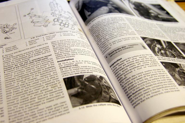 | Keywords: brake caliper brakecaliper haynes manual haynesmanual interesting job interestingjob messy project 365 project365 text indoor Tonight was spent rather uncharacteristically doing motorbike work. Last week I got my first MOT failure on a bike...awww. The thing is I knew it was going to fail before I even left my own street, as the rear brake wasn't working brilliantly. I couldn't test the bike until it was going for an MOT though due to legal reasons! Anyway, sorting the back brake out was a doddle - it just needed bleeding. The front brake however, though it passed the test, decided to go sticky on me and start seizing. This needed a strip down and clean of the caliper. It's not a difficult job, but not one I've tackled before, so out came the trusty Haynes to get some more oily thumbprints. :) Tonight was spent rather uncharacteristically doing motorbike work. Last week I got my first MOT failure on a bike...awww. The thing is I knew it was going to fail before I even left my own street, as the rear brake wasn't working brilliantly. I couldn't test the bike until it was going for an MOT though due to legal reasons! Anyway, sorting the back brake out was a doddle - it just needed bleeding. The front brake however, though it passed the test, decided to go sticky on me and start seizing. This needed a strip down and clean of the caliper. It's not a difficult job, but not one I've tackled before, so out came the trusty Haynes to get some more oily thumbprints. :) |