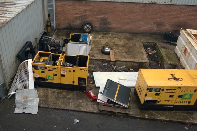 Keywords: broken diesel generator dieselgenerator plant project 365 project365 outdoor After dropping Laura off at work this morning I headed out to an unusual venue for me, Bootle Strand. I was going to look at at a piece of furniture in the British Heart Foundation shop, but it opened at half nine, and I was there at nine. That game me time for a quick spin around the block where I happened across this slightly unusal view. This seems to be the backyard of a firm that supplies these huge semi-permanent generators. They're not than unusual a sight, but it is unusual to see them in a state of undress. It's not hard to guess what's in them - a fuel tank, a diesel engine which is almost certainly from a car, an alternator to produce current and some transformers and electrical switching. Here in the yellow box on the left we can see what looks like each of those in turn, running right to left. Behind the yellow generator we've got a white one in an even further state of undress which gives us a cracking view of the engine which does indeed look just like something you'd see under the bonnet of a van. Not a pretty sight, but for me at least, an interesting one. ETA: It's not a car engine! This generator in the front is an Atlas Copco QAS38, and that uses a Yanmar 4TNE98-ACG engine. Yanmar are a Japanese diesel engine manufacturer specialising in industrial and marine diesels...which fits. :) After dropping Laura off at work this morning I headed out to an unusual venue for me, Bootle Strand. I was going to look at at a piece of furniture in the British Heart Foundation shop, but it opened at half nine, and I was there at nine. That game me time for a quick spin around the block where I happened across this slightly unusal view. This seems to be the backyard of a firm that supplies these huge semi-permanent generators. They're not than unusual a sight, but it is unusual to see them in a state of undress. It's not hard to guess what's in them - a fuel tank, a diesel engine which is almost certainly from a car, an alternator to produce current and some transformers and electrical switching. Here in the yellow box on the left we can see what looks like each of those in turn, running right to left. Behind the yellow generator we've got a white one in an even further state of undress which gives us a cracking view of the engine which does indeed look just like something you'd see under the bonnet of a van. Not a pretty sight, but for me at least, an interesting one. ETA: It's not a car engine! This generator in the front is an Atlas Copco QAS38, and that uses a Yanmar 4TNE98-ACG engine. Yanmar are a Japanese diesel engine manufacturer specialising in industrial and marine diesels...which fits. :)
