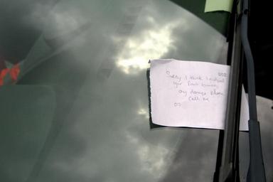 | Keywords: bumped car bumpedcar project 366 project366 sorry note sorrynote This isn't on my car! When I was walking back to my car after work I noticed this note under the wiper of a car a few behind mine. It's a sorry note from someone who think they might have nudged a bumper, and it had a name, phone number and address which I've painted out. It gave me a little joy to think that people still do that. Bravo! This isn't on my car! When I was walking back to my car after work I noticed this note under the wiper of a car a few behind mine. It's a sorry note from someone who think they might have nudged a bumper, and it had a name, phone number and address which I've painted out. It gave me a little joy to think that people still do that. Bravo! |
