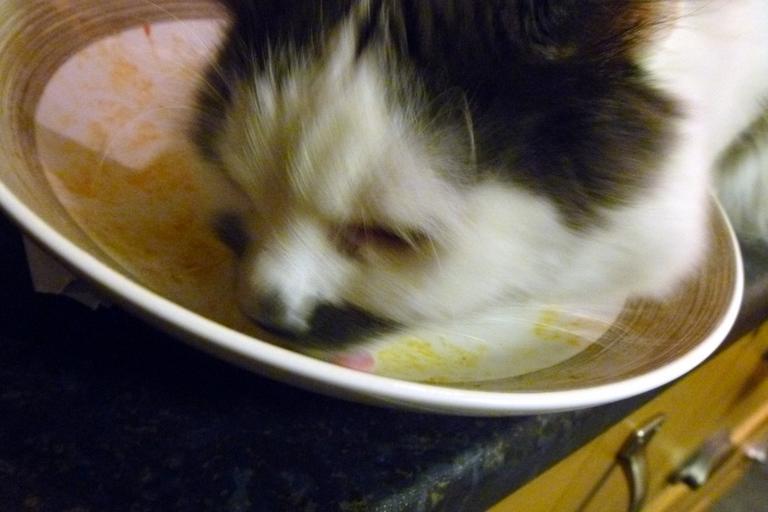 | Keywords: licking plates lickingplates lucy the cat lucythecat paella project 366 project366 I cooked a paella for tea tonight, and it actually turned out really nicely. What I wasn't expecting was a vote of approval from Lucy, who decided to pitch in with the washing up! She's hard faced enough to lick a plate right in front of you, but it is unusual for her to go minesweeping in the kitchen. I think she must have liked it. Now...is that to do with my manifold culinary prowess, or just the chicken stock base I wonder? ;) I cooked a paella for tea tonight, and it actually turned out really nicely. What I wasn't expecting was a vote of approval from Lucy, who decided to pitch in with the washing up! She's hard faced enough to lick a plate right in front of you, but it is unusual for her to go minesweeping in the kitchen. I think she must have liked it. Now...is that to do with my manifold culinary prowess, or just the chicken stock base I wonder? ;) |