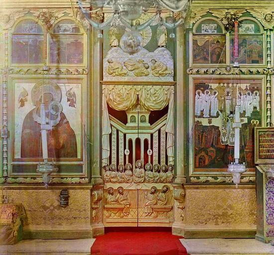 | Keywords: Prokudin21073v Belozersk1909.jpg en Iconostasis in the Church of the Everforgiving Savior Belozersk Russian Empire ru Иконостас в це кви Спаса Всемилостивого Белозе ск 1909 http //www loc gov/pictures/resource/prokc 21073/ Creator Sergey Prokudin-Gorsky digital rendering for the Library of Congress by Walter Frankhauser / WalterStudio other versions PD-old-70-1923 Photo of Belozersk by Sergey Prokudin-Gorsky Iconostases in Russia Uploaded with UploadWizard | ||||