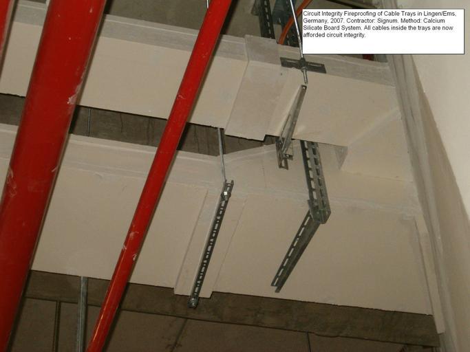 Keywords: Promat signum tray cladding 2.jpg Circuit Integrity Fireproofing of Cable trays in Lingen/Ems Germany using Calcium silicate board system qualified to DIN 4102 Contractor Signum Bissendorf Germany Own 2007-02-17 Achim Hering Fire Fireproofing DIN 4102 Calcium silicate Circuit integrity Passive fire protection boards |