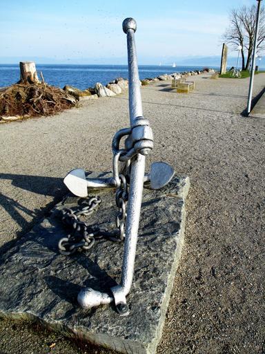 Keywords: promenade lakeside lake constance ship anchor iron bank romanshorn switzerland