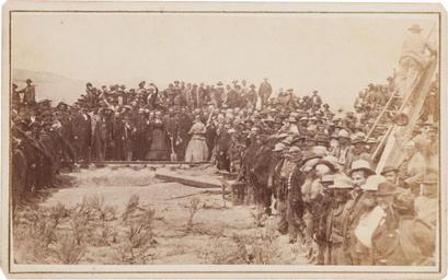 Keywords: Promontory Utah 10 May 1869.jpg Transcontinental Railroad Promontory Point Utah CDV http //historical ha com/itm/transportation/transcontinental-railroad-promontory-point-utah-cdv/a/6145-42434 s 1869-05-10 The verso has the imprint of Savage Ottinger of Great Salt Lake City Utah <br> Creator George M Ottinger <br> Creator Charles Roscoe Savage PD-old Union Pacific no 119 Central Pacific no 60 Union Pacific Railroad Central Pacific Railroad Golden Spike National Historic Site Grenville M Dodge Rail transport events in the United States People along railway lines 1869 in rail transport in the United States Famous photographs 1869 photographs George M Ottinger Charles Roscoe Savage |