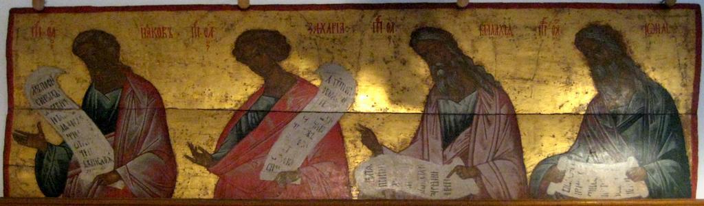 Keywords: Prophets from Ferapontov05 (Kirillo-Belozersk).jpg П о оческий яд Около 1502 года Из Собо а Рождества Бого одицы в Фе апонтовом монасты е узей Ки илло-Белозе ского онасты я 1 П о оки Софония Аввакум Иона оисей 2 П о оки Даниил Ие емия Исайя 3 Богомате ь Знамение ца и-п о оки Давид и Соломон 4 П о оки Аа он Гедеон Иезекииль 5 П о оки Иаков Заха ия алахия Иоиль own photo by shakko ~ 1502 anonymous <gallery> File Prophets from Ferapontov01 Kirillo-Belozersk jpg File Prophets from Ferapontov02 Kirillo-Belozersk jpg File Prophets from Ferapontov03 Kirillo-Belozersk jpg File Prophets from Ferapontov04 Kirillo-Belozersk jpg File Prophets from Ferapontov05 Kirillo-Belozersk jpg </gallery> Icons in Kirillo-Belozersky Monastery Uploaded by Shakko/Photos Prophets line in iconostasis Zechariah prophet in icons Malachi in icons PD-Art Joel in icons Jacob in icons ImageNote 1 524 68 173 112 2707 796 2 Jacob ImageNoteEnd 1 ImageNote 2 1147 75 223 88 2707 796 2 Zechariah ImageNoteEnd 2 ImageNote 3 1793 85 233 105 2707 796 2 Malachi ImageNoteEnd 3 ImageNote 4 2440 78 169 78 2707 796 2 Joel ImageNoteEnd 4