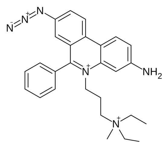 Keywords: Propidium monoazide.svg Chemical structure of propidium monoazide Own 13 18 17 April 2014 UTC Ed Edgar181 Fluorescent dyes Organoazides Quaternary ammonium ions Phenanthridines