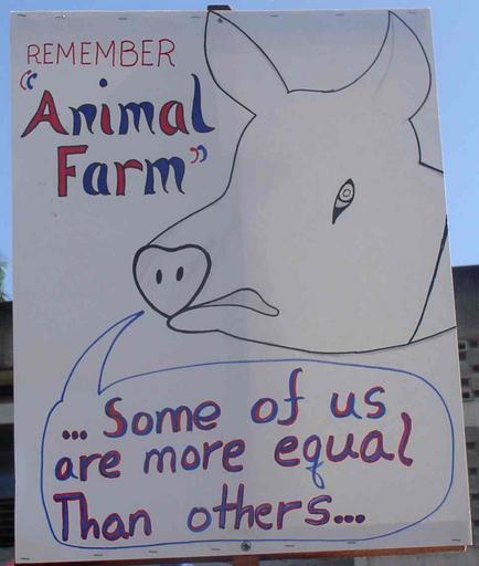 Keywords: Protest 0086.JPG Belizian protests 21st January 2005 ;See also 2005 Belizian Protests Belizian Protest against tax increases near the National Assembly building Belmopan Belize 21 January 2005 Prejudice Banners and signs at demonstrations and protests in English Pigs in art |