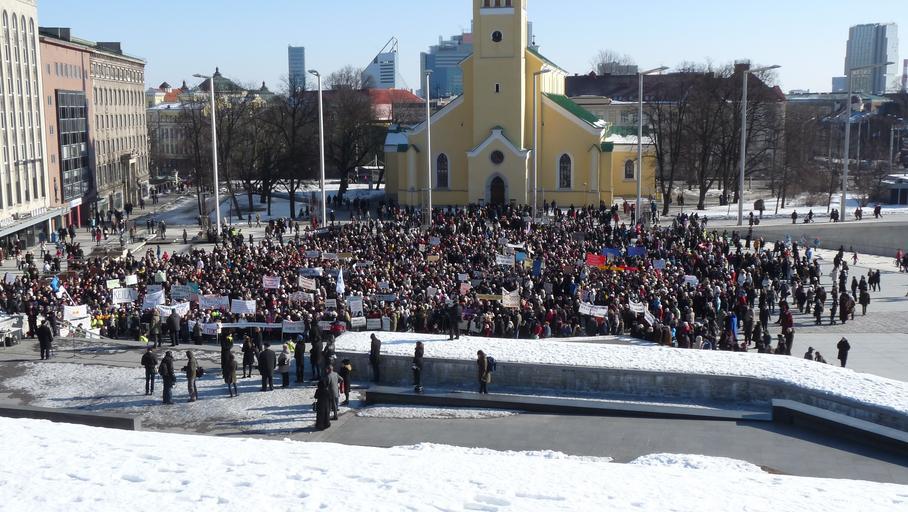 Keywords: Protest in Freedom square 006.JPG en Protests in Estonia own 2012-03-07 Dmitry G Protest against economic problems in Freedom Square Tallinn 7 March 2012