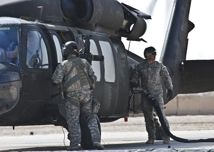 | Keywords: Providers pump 1 million gallons of aviation fuel in less than 3 months DVIDS118314.jpg en Spc Christopher McGee petroleum specialist Company A 404th Aviation Regiment Combat Aviation Brigade 4th Infantry Division Multi-National Division - Baghdad refuels a UH-60 Black Hawk helicopter at Camp Taji's forward arming and refueling point Sept 26 2008 McGee's unit who is responsible for refueling and arming the entire brigade's aircraft have distributed more than one million gallons of aviation fuel in about 2 1/2 months McGee is a native of Wallis Texas 2008-09-26 Spc Jason Dangel https //www dvidshub net/image/118314 118314 2008-09-26 14 36 CAMP TAJI IQ PD-USGov UH-60 Black Hawk Camp Taji Images from DoD uploaded by Fæ |