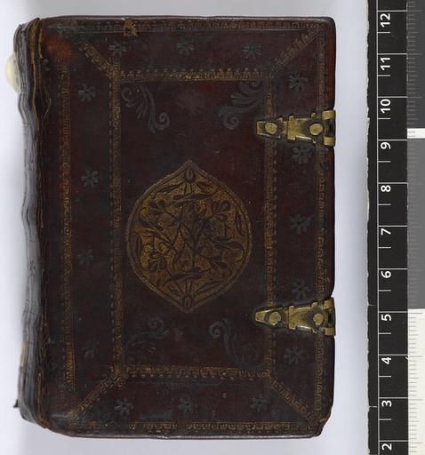 Keywords: Psalter and Canticles -2nd half of the 12th century - Upper cover (Add MS 40753).jpg Style Centrepiece; Caption Upper cover; Colour Brown; Edge Unspecified exhibition history Decorative Technique Tooled in gold; Cover Material Goatskin includes morocco turkey etc 18th century of wooden boards covered with dark red gilt-tooled leather In the centre of each side is an oval gilt-stamped panel of floral design like that in Add MS 40754 There are remains of metal clasps Eastern Mediterranean Likely Palestine or Cyprus given the script Canart 1981 Two clasps catching on to the upper cover object history Text 13c; Unspecified; Unspecified object type Cc-zero place of creation Binding Eastern Mediterranean place of discovery Unspecified British Library image http //www bl uk/catalogues/bookbindings/LargeImage aspx RecordId 020-000019490 ImageId ImageId 57740 Copyright BL Psalter and Canticles 2nd half of the 12th century Uploaded with GWToolset Psalter and Canticles 2nd half of the 12th century - Upper cover Add MS 40753 http //www webarchive org uk/bldatasets/bindings/add_ms_40753_fblefr jpg Bookbinding 18th-century bookbinding British Library Bookbindings Taken with Phase One IQ140 |