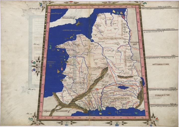 | Keywords: Ptolemy Cosmographia 1467 - France.jpg Book Jacob d'Angelo after Claudius Ptolemaeus 1467 Reichenbach Monastery Latin Cosmographia Claudii Ptolomaei Alexandrini Artwork en France pl Francja ink color parchment cm 42 28 8 Warsaw Institution National Library Warsaw en Dedicated to Pope Paul II Object history ProvenanceEvent 1573 transfer Chancellor Jan Zamoyski purchased in Paris ProvenanceEvent 1818 transfer Library of the Zamoyski Estate ProvenanceEvent 1946 transfer National Library in Warsaw http //www polona pl/dlibra/doccontent2 id 61 dirids 1 www polona pl Rps BOZ 2/I-II 1467 Nicolaus Germanus Copyright expired PD-Art Other versions PD-old-100-1923 Cosmographia Claudii Ptolomaei Alexandrini Old maps of France |