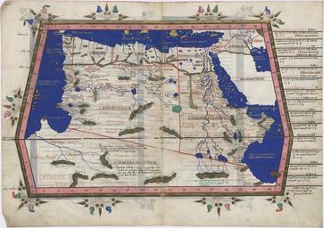 Keywords: Ptolemy Cosmographia 1467 - North Africa.jpg Book Jacob d'Angelo after Claudius Ptolemaeus 1467 Reichenbach Monastery Latin Cosmographia Claudii Ptolomaei Alexandrini Artwork en North Africa pl Północna Afryka ink color parchment cm 42 28 8 Warsaw Institution National Library Warsaw en Dedicated to Pope Paul II Object history ProvenanceEvent 1573 transfer Chancellor Jan Zamoyski purchased in Paris ProvenanceEvent 1818 transfer Library of the Zamoyski Estate ProvenanceEvent 1946 transfer National Library in Warsaw http //www polona pl/dlibra/doccontent2 id 61 dirids 1 www polona pl Rps BOZ 2/I-II 1467 Nicolaus Germanus Copyright expired PD-Art Other versions PD-old-100-1923 Cosmographia Claudii Ptolomaei Alexandrini Ptolemaic Africa Old maps of Africa |