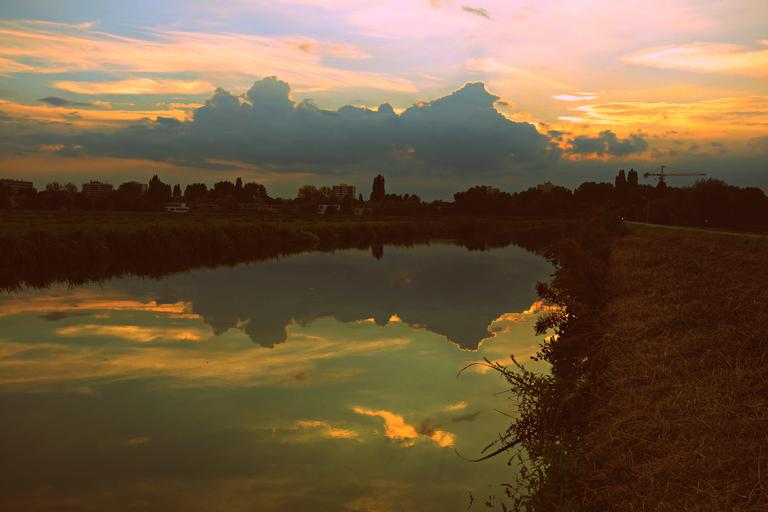 Keywords: public domain dedication publicdomaindedication mabelamber pexels sunset sun clouds reflections water waterway silhouettes glow golden glow goldenglow