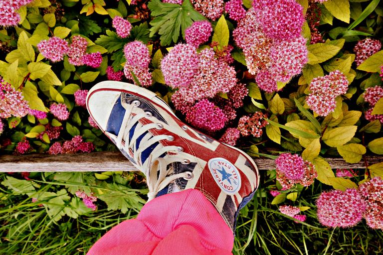 Keywords: foot leg shoe sneaker body body part bodypart female person people flowers pose body language bodylanguage public domain dedication publicdomaindedication pixabay pexels mabelamber outdoor