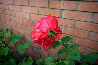 Keywords: rose flower bloom romantic love wedding red rose redrose wall rose at wall roseatwall urban urban setting urbansetting public domain dedication publicdomaindedication mabelamber pixabay
