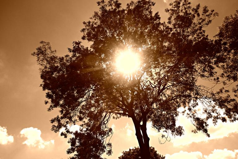 Keywords: tree tree top treetop sky sun sunlight sun shining through tree sunshiningthroughtree silhouette public domain dedication publicdomaindedication pixabay pexels mabelamber