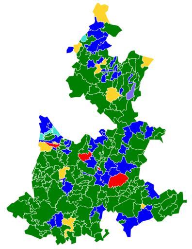 Keywords: Puebla Ayuntamientos 2007.svg Distribucion por partido politico de los Ayuntamientos de Puebla en 2007 Own 2007-11-23 Battroid Election maps of Mexico Maps of Puebla SVG maps of Mexico SVG maps of Puebla