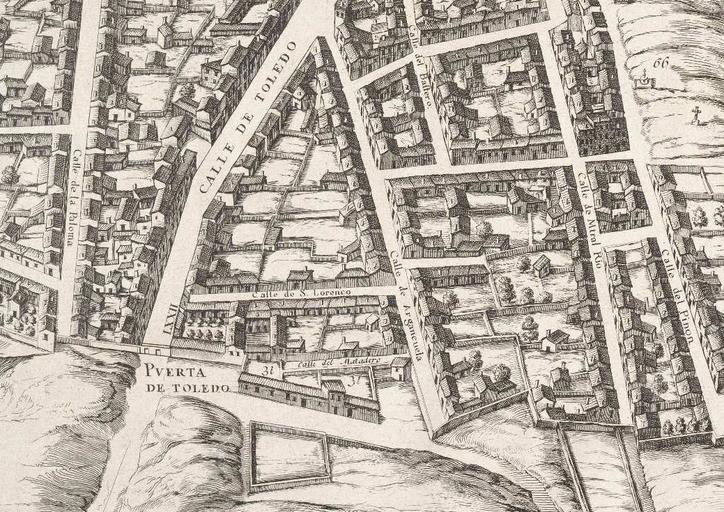 Keywords: Puerta de Toledo-Texeira-1656.jpg Plano de Madrid en el siglo XVII Detalle de la Puerta de Toledo http //bdh-rd bne es/viewer vm id 0000061128 Biblioteca Digital Hispánica 1656 Pedro Teixeira PD-old-100 Gates of the Walls of Philip IV Puerta de Toledo Madrid Croppings of Pedro Teixeira's Topographia de la Villa de Madrid 1656 |