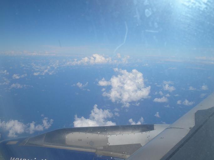 Keywords: PuertoRicoasseenfromanairplane.JPG This is a view of the sky from the window of an airplane on its way to Aguadilla Puerto Rico Own 2007-10-24 Catholicwriter Aerial photographs of clouds Cabin window views of aircraft wings