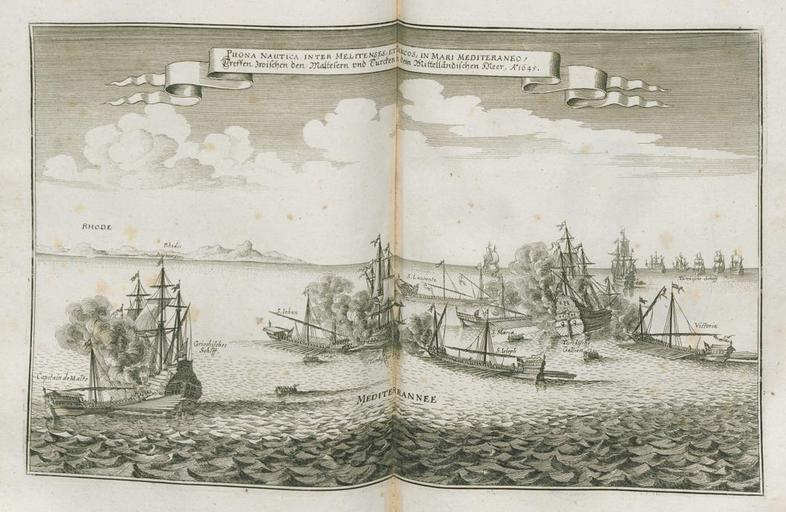 | Keywords: Pugna Nautica inter Melitenses, et Turcos, in Mari Mediteraneo (1707, original).jpg author Treffen zwischen den Maltersern und Türcken in dem Mittelländischen Meer A<sup>o</sup> Anno 1645 Naval Battle between the Maltese and Turks in the Mediterranean Sea Latin / Engagement between the Maltese and Turks in the Mediterranean Sea German In the Year 1645 A depiction of a sea battle between a convoy of Turkish ships sailing from w Constantinople to Alexandria and carrying a number of pilgrims bound for Mecca which were attacked by the Knights Hospitaller of Malta during the Action of 28 September 1644 The year 1645 in the image caption appears to be a mistake <p>On the left a galley labelled Capitaine de Malte Maltese captain engages a vessel labelled Griechisches Schiff Greek ship In the middle two ships labelled S Iohann and S Ioseph engage another Turkish sailing vessel labelled Türckisches Schiff Turkish ship ; and on the right three galleys labelled S Laurentz S Maria and Victoria surround a ship labelled Türckische Gallion Turkish galleon In the distance on the right are more vessels labelled Türckische Schiff Turkish ships while on the left the land is marked Rhode in German and Rhodis in Latin Rhodes The sea is labelled Mediterrannee </p> 1707 Engraving accession number object history credit line caption in Latin and German Pugna Nautica inter Melitenses et Turcos in Mari Mediteraneo Latin / Treffen zwischen den Maltersern und Türcken in dem Mittelländischen Meer German A<sup>o</sup> 1645 Cite book Johann Peter Lotichius of All Significant Events in Europe that is Upper and Lower Germany / France / Spain / Italy / Great Britain / Denmark / Sweden / Poland / Muscovy / Bohemia / Hungary / Transylvania / Wallachia / Moldova but also in Turkey and the Barbary Coast that Occurred and Transpired Everywhere from the Year 1643 to the Year 1647 http //www dilibri de/rlbdfg/content/titleinfo/643433 Frankfurt am Main Andreä; Merian 1707 plate between pp 644 “645 http //www dilibri de/rlbdfg/content/pageview/644259 p 826 of digitized version 551856324 other versions 100x100px Pugna Nautica inter Melitenses et Turcos in Mari Mediteraneo 1707 original png PD-Art-100 derivative works Pugna Nautica inter Melitenses et Turcos in Mari Mediteraneo 1707 original png Action of 28 September 1644 1707 engravings Engravings of naval battles Engravings of Theatrum Europaeum Naval battles involving the Ottoman Empire in art Naval ships of Order of Saint John of Jerusalem History of Alexandria |