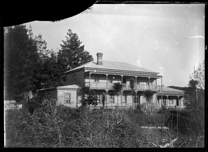 Keywords: blackandwhite monochrome photo border outdoor building architecture serene black and white View of the Puhoi Hotel, a two storey wooden building with verandahs along the front on both levels. In the foreground are brambles and other low vegetation. Cabbage trees are growing near the front of the the hotel. Photograph taken 1900-1930 by William Archer Price. Inscriptions: Inscribed - Photographer's title on negative -bottom right: Puhoi Hotel. No 1966. Quantity: 1 b&w original negative(s). Physical Description: Dry plate glass negative 4.5 x 6.5 inches Puhoi Hotel. Price, William Archer, 1866-1948 :Collection of post card negatives. Ref: 1/2-000151-G. Alexander Turnbull Library, Wellington, New Zealand. natlib.govt.nz/records/22785071 View of the Puhoi Hotel, a two storey wooden building with verandahs along the front on both levels. In the foreground are brambles and other low vegetation. Cabbage trees are growing near the front of the the hotel. Photograph taken 1900-1930 by William Archer Price. Inscriptions: Inscribed - Photographer's title on negative -bottom right: Puhoi Hotel. No 1966. Quantity: 1 b&w original negative(s). Physical Description: Dry plate glass negative 4.5 x 6.5 inches Puhoi Hotel. Price, William Archer, 1866-1948 :Collection of post card negatives. Ref: 1/2-000151-G. Alexander Turnbull Library, Wellington, New Zealand. natlib.govt.nz/records/22785071 |