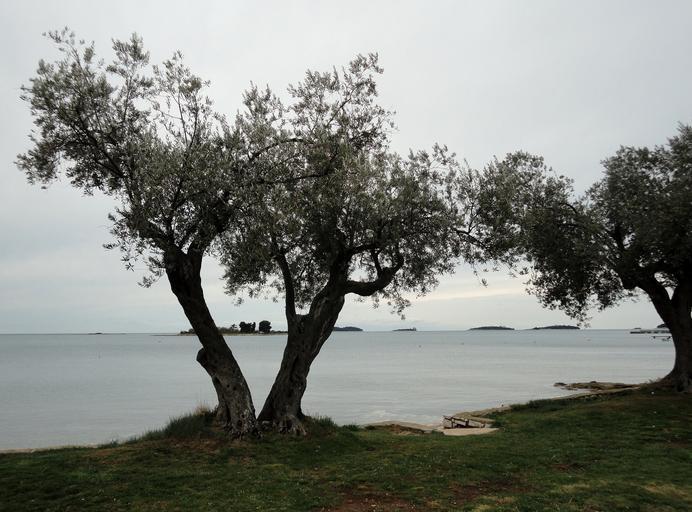 Keywords: pula croatia beach mood sea spring clouds trees olive trees
