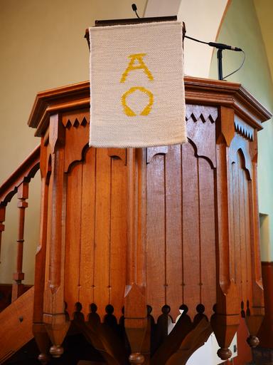 Keywords: pulpit church sermon faith christen alpha omega symbols at the beginning end god christ
