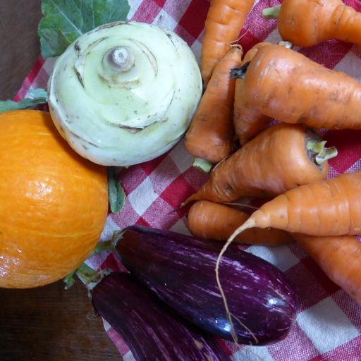 Keywords: pumpkin carrots eggplant cook food eat delicious harvest vitamins of course healthy plant vegetables bio frisch ingredients kohlrabi