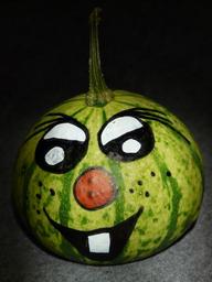 Keywords: pumpkin face cheeky painting green eyes nose tooth pumpkin face halloween
