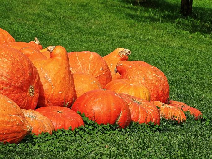 Keywords: pumpkin gourd autumn orange green meadow autumn motives