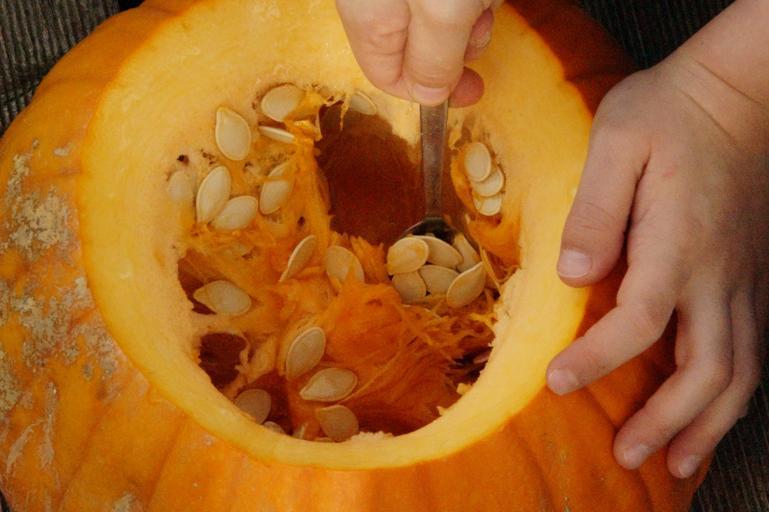 Keywords: pumpkin pumpkins orange bright autumn autumn decoration seasonal decorative decoration thanksgiving halloween halloweenkuerbis pumpkin ghost hollow out scrape out scoop out scrape off pulp remove diy pumpkin ghost