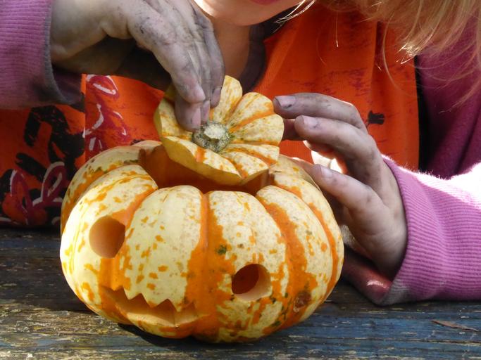 Keywords: pumpkin tinker children play halloween girl autumn play outside
