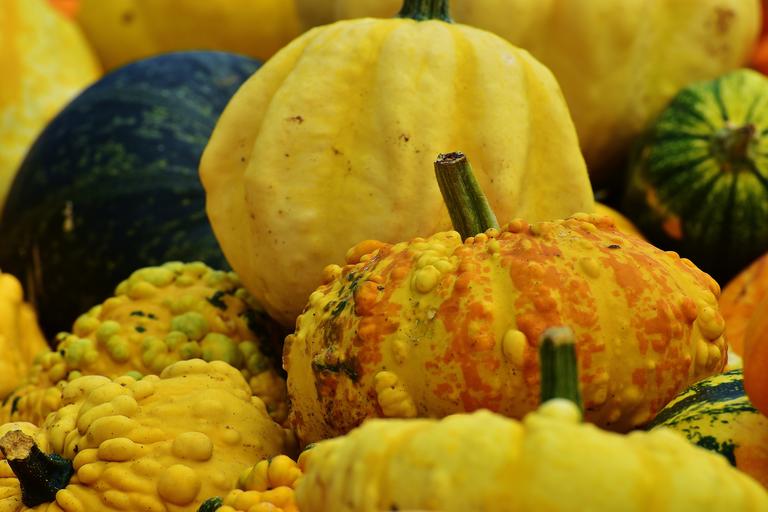 Keywords: pumpkins autumn autumn decoration harvest decorative squashes decoration orange yellow halloween garden color colorful seasonal pumpkin