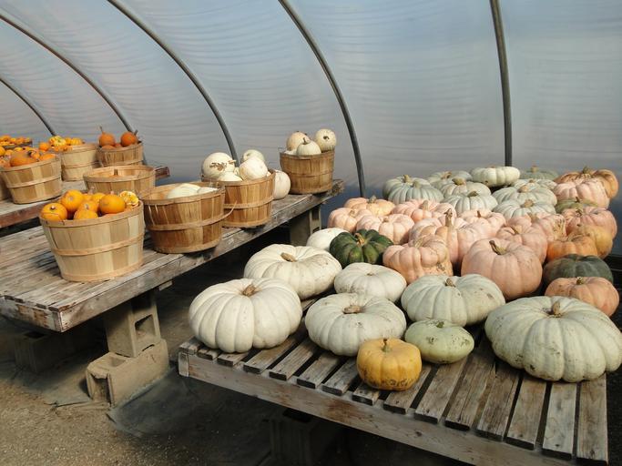 Keywords: pumpkins squash flat fall autumn farming agriculture greenhouse baskets harvest cinderella seasonal food decorations colorful vegetable october farm crops produce thanksgiving