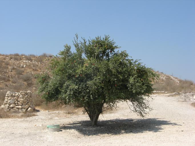Keywords: Punica granatum with fruit in august.JPG Punica granatum tree in Maresha Israel in August Fruit is clearly seen on the tree own 2007-08-22 יעקב Punica granatum Trees in Israel Maresha