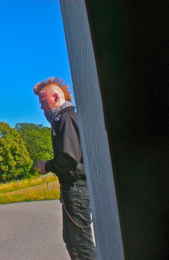 Keywords: punk hair haircut bus shelter järna sörmland summer