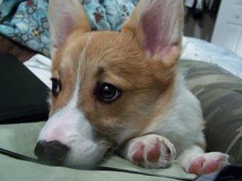 Keywords: Pup2.JPG Morton Pembroke Corgi pup - pictured at 3 months Own 2008-02-14 Beyonddichotomy Public domain Pembroke Welsh Corgi