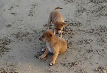 Keywords: puppy beach sand playing pet dog animal canine cute mammal domestic friend adorable pup love happiness happy breed doggy sea arabian gokarna karnataka india