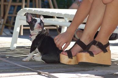 Keywords: puppy dog animal pet small sitting puppies shoes feet