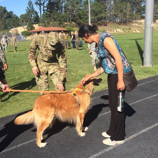 Keywords: presidio pom public_affairs publicaffairs monterey dli dliflc defense_language defenselanguage foreign_language foreignlanguage military language foreign defense community community_relations communityrelations california ca calif dod joint education school ready resilient ready_and_resilient readyandresilient resiliency 229th military_intellegence militaryintellegence intelligence foxtrot f_co fco family_readiness familyreadiness frg family readiness dog dogs mascot lingo humane humane_society humanesociety monterey_county montereycounty spca usa outdoor animal pet Foxtrot Company, 229th Military Intelligence Bn., brought the SPCA of Monterey County "Hug a Pet" team and a hot dog lunch to Defense Language Institute Foreign Language Center students and staff at the to Presidio of Monterey's Hilltop Track Nov. 9, 2016. Three dogs adopted from the shelter, two certified therapy dogs, and Pfc. Lingo - the school's mascot - spread "puppy love" to raise morale for service members, many of whom live in the barracks where they are not allowed to care for pets while completing military language training at the school. DoD photo by Catherine Caruso, Presidio of Monterey Public Affairs. Foxtrot Company, 229th Military Intelligence Bn., brought the SPCA of Monterey County "Hug a Pet" team and a hot dog lunch to Defense Language Institute Foreign Language Center students and staff at the to Presidio of Monterey's Hilltop Track Nov. 9, 2016. Three dogs adopted from the shelter, two certified therapy dogs, and Pfc. Lingo - the school's mascot - spread "puppy love" to raise morale for service members, many of whom live in the barracks where they are not allowed to care for pets while completing military language training at the school. DoD photo by Catherine Caruso, Presidio of Monterey Public Affairs.