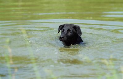 Keywords: puppy swimming summer water pet doggy dog fun active pond dog playing cute outdoors activity animal