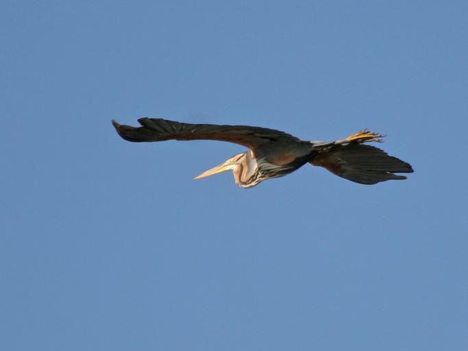 Keywords: Purple Heron in flight.jpg Photographed by Neil Gray on 11 December 2005 at Marievale Bird Sanctuary Gauteng South Africa Camera Canon EOS 20D Shutter 1/1250 sec Aperture 5 6 ISO 200 Focal length 400mm -- Public Domain Ardea purpurea in flight Pelecaniformes of Marievale |