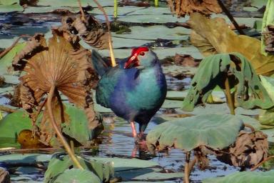 Keywords: purple swamphen porphyrio porphyrio purple moorhen swamp hen rail rallidae lotus pond karnataka india