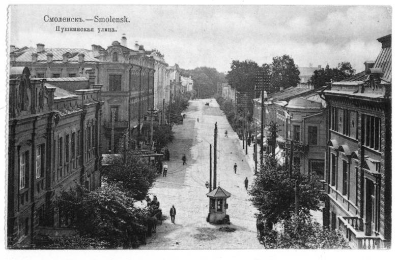 Keywords: Puskinskaya Street 6.jpg en Pushkin Street now - Lenin Street in Smolensk ru Пушкинская улица ныне - улица Ленина в Смоленске О игинальная отк ытка е установлены before 1917 года PD-RusEmpire 20th-century postcards Postcards of Smolensk