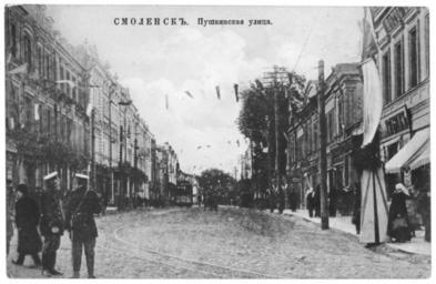 Keywords: Puskinskaya Street 7.jpg en Pushkin Street now - Lenin Street in Smolensk ru Пушкинская улица ныне - улица Ленина в Смоленске О игинальная отк ытка е установлены before 1917 года PD-RusEmpire 20th-century postcards Postcards of Smolensk