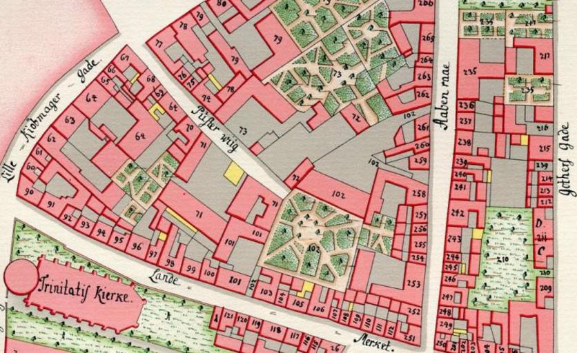 Keywords: Pustervig (Gedde).png en Detail from Gedde's district map of Copenhagen showing the street Pustervig and the area where Hauser Plads and Suhmsgade was later created in Copenhagen Denmark 1757-01-26 http //www indenforvoldene dk/suhmsgade html Gedde other versions PD-Art Hauser Plads Christian Gedde |