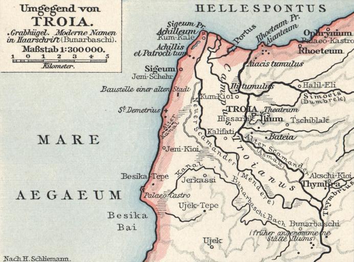 Keywords: Putzger Umgegend von Troia.jpg de Umgegend von Troia nach Heinrich Schliemann F W Putzgers Historischer Schul-Atlas Friedrich Wilhelm Putzger 1901 PD-old Maps of Troy